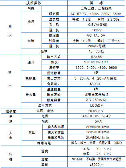 三相電壓三相電流組合表技術(shù)參數(shù)